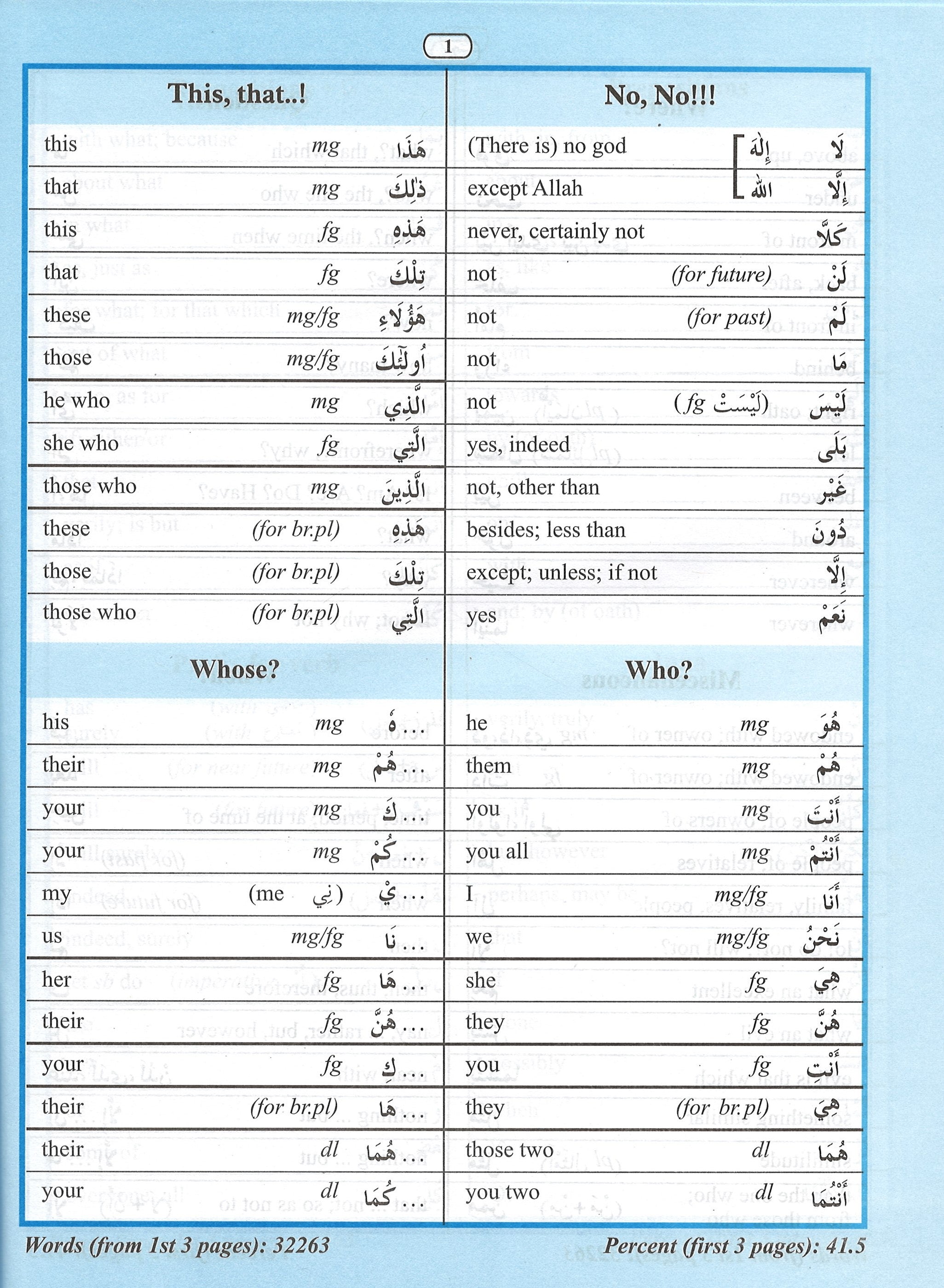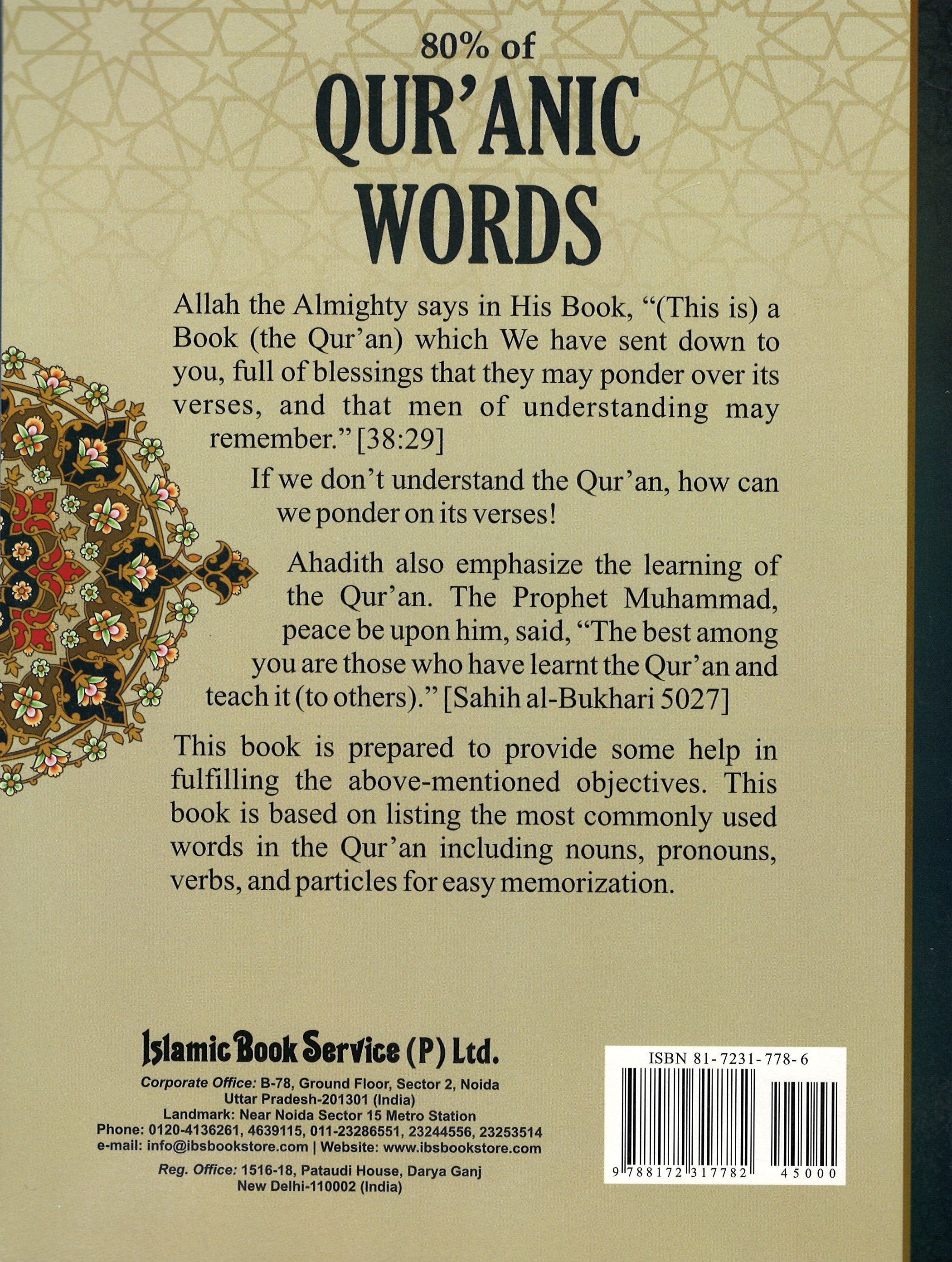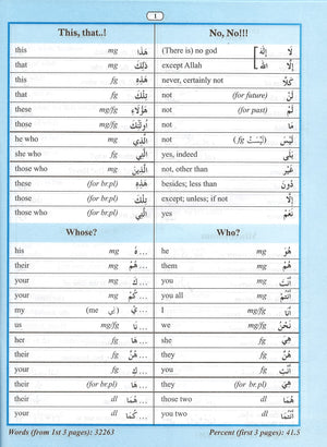 This book is designed to facilitate the memorization of Qur'anic vocabulary by classifying words commonly found in the Qur'an. It highlights 80% of the words used throughout the Qur'an, simplifying the process of understanding and memorizing these essential terms. With its structured approach, it enables readers, whether beginners or advanced learners, to quickly grasp Qur'anic words and phrases, enhancing their comprehension of the Qur'an. This resource is particularly useful for students of Arabic and those looking to deepen their connection with the Qur'anic text.