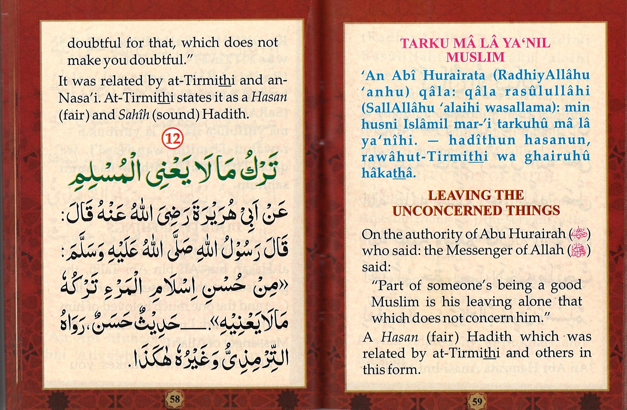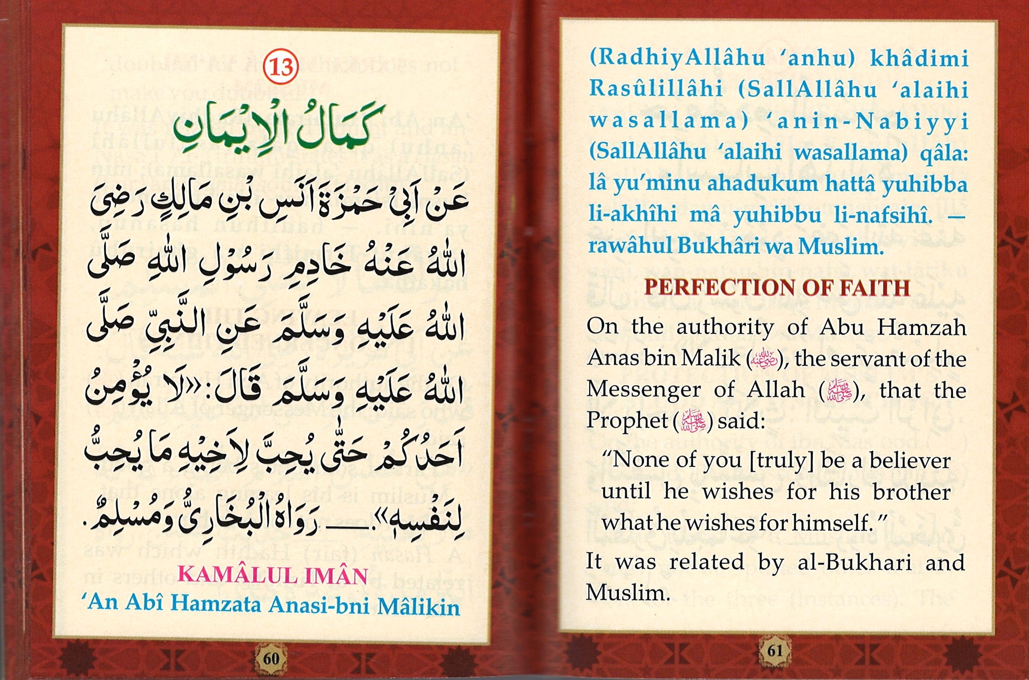 Imam al-Nawawi's Forty Hadith collection in full colour, glossy print. Arabic text with English translation & transliteration.