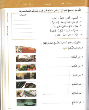 At its end, the first level includes a group of vocabularies with illustrated pictures. It also comprises lists for vocabularies used in each unit and another list for all vocabularies used in the level arranged alphabetically.