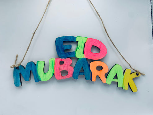 Bring joy and excitement to your home with this beautiful “EID MUBARAK” wooden banner. Watch little Muslims beam with excitement as they paint every letter and hang this up with glee. Kit includes: Wooden banner Paint set Paint brush Twine Size: 9in x 3in Each set is individually wrapped and sealed. This craft is perfect as a gift or a party favor. Does your child attend Arabic/Islamic classes? Why not gift one to the whole class? Contact us for a special discount on bulk orders.