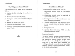 Memorization of Suwar, The declaration of faith, The Categories of Tawhid, The Pillars of Islam, Obligations of Payers, Tashahhud in Prayers, Sunnan of Prayers, Invalidators of Prayers, Conditions of Wudu, Obligations of Wudu, Invalidators of Wudu, Moral values, Islamic Manners, Warning against committing shirk and acts of disobedience, Preparing the deceased for burial.