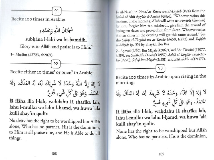 This book is an abridgment of my earlier work entitled, Adh-Dhikr wad-Du'a wal-'llajbir-Ruqyah mina'-Kitab was-Sunnah. In order to make it small and easily portable, I have chosen only the section on words of remembrance for this abridgment. To achieve this, I only mentioned the text of the words of remembrance instead of the entire Hadith. I also limited myself to mentioning only one or two references from the original book for each Hadith. Whoever would like to know about the Companion who related a particular Hadith, or more information about where it is recorded, should refer to the original work (mentioned above). I ask Allah the Glorious, the Mighty, by His beautiful Names and by His sublime attributes to accept this as having been done sincerely for His sake alone. I ask Him to bring me its benefits during my lifetime and after my death. May those who read it, those who print it, or have had any role in distributing it, benefit from it also. Surely He, glory be unto Him, is Capable of all things. May the peace and blessings of Allah be upon our Prophet, Muhammad, and upon his family and Companions and whoever follows them in piety until the Day of Judgment.