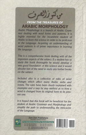Arabic Morphology (sarf)is a branch of Arabic grammar dealing with word forms and patterns. It is highly essential for the student of Arabic to learn this science in order to be proficient in the language. Acquiring an understanding of word patterns is of prime importance in learning the language. This is a comprehensive book dealing with all the important aspects of the subject. If a student studies this book thoroughly he will develop a very good foundation of this science and it would absolve him of the need to study any further books on the subject. Included also is a collection of rules of word changes which affect many Arabic verbs and nouns. The rules have been clearly explained with examples and a step by step method as to how a word is changed from its original form to its present one. A beneficial book for the student of Arabic grammar and morphology, which will simplify the path to understanding the intricacies of the language. About The Author Maulana Ebrahim Muhammad is presently a senior lecturer at Madrasah In'amiyyah, Camperdown (South Africa)