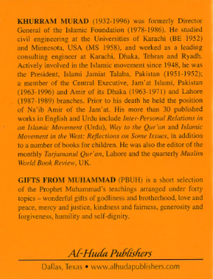 A pocket-sized companion to The Quranic Treasures and Who is Muhammad (pbuh), containing a selection of the Prophet Muhammads teachings arranged under 40 topics wonderful gifts of godliness and brotherhood, love and peace, mercy and justice, kindness and fairness, generosity and forgiveness, humility and dignity