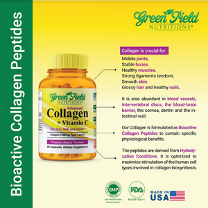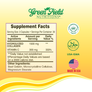Greenfield Nutritions - Halal Collagen 1500 mg with Halal Vitamin C 300 mg for Hair, Skin, Nails, and Joints, 90 Capsules