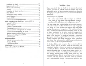 This booklet is based on a book titled “Qawl-ur-Rashad” by Dr. Sulaiman Al-Faifi, which contains Islamic rules regarding marriage, childbirth and a child’s rights upon his parents; and when grown up, their duties towards their parents.Publisher’s NoteThere is no doubt that the family is the nucleus of society, it requires great care in order to ensure its welfare. This can be achieved by taking the right preparatory steps in terms of seeking the right spouse, or the parent to be in accordance with Prophetic instructions. The warning of the Prophet (pbuh): If a suitor whose faith and conduct you are satisfied with comes to you, marry him your daughter. If you do not, there will be affliction on earth and gross corruption.One may wonder how could affliction and corruption ensue on a universal scale from an affair which involves only two people. This would be a valid question to be asked by those who look at marriage from a narrow perspective. This matrimonial union which involves a couple, constitutes the core of society. Its state of affairs is reflected on the society positively or negatively. A pious couple provides pious offspring with the Will of Allah. Were every guardian to insist on choosing a committed spouse, non-committed people would have no choice but to be good Muslims, otherwise, they would not find any family to associate with them. But unfortunately, wealth, lineage, social status and similar factors top the priority list for marriage.As for the affliction and corruption that are mentioned in the above Hadith; they are the direct result of marriages of non-committed Muslims who are not keen on raising children according to Islamic standards. We know that children learn more by example than by words. No one among us says I am a non-committed Muslim, yet telling our children what to do and not showing them by good example is the action of a non-committed Muslims.Abdul Malik Mujahid