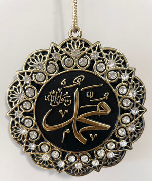This unique geometric star ornament is double-sided, one side reads “Allah” and the other side reads “Muhammad” in Arabic. The embedded rhinestones add an elegant touch, making this piece the perfect accessory to hang in the car, home, office and more! Makes a perfect gift also!