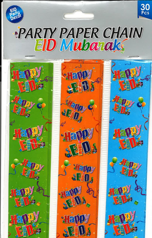 These Eid Mubarak paper chains come in three different colours - Green, Blue, and orange.
