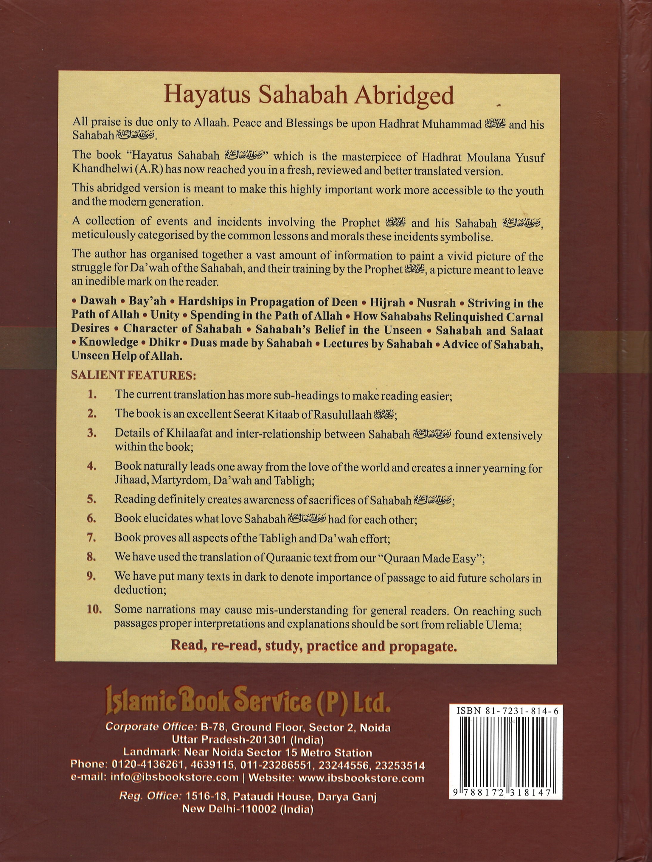 As you delve into the pages of “Hayatus Sahabah Abridged” you will witness the heart, light, and power of the Sahabah’s faith, which not only influenced their individual lives but also turned the tide of history. This book is a compelling invitation to comprehend the fundamental Islamic forces that shaped the trajectory of the Sahabah’s era.