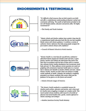 Have you ever considered how to nurture your student's or child's faith in Islam through a health education curriculum? This series delves into the wisdom underlying Islamic practices and beliefs, showcasing how they are precisely formulated by the One, all-wise and all-knowing Creator. Since this book falls within the category of health education, it addresses important health topics while adopting an Islamic perspective. These topics are presented with a focus on their relevance, engaging pedagogy, and age-appropriateness.