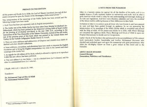 This is the most popular and widely disseminated English translation of the Holy Qur'an. It is the official translation of many Islamic institutions. The translation is provided by Muhammad Taqi-ud-Din Al-Hilali and Muhammad Muhsin Khan.