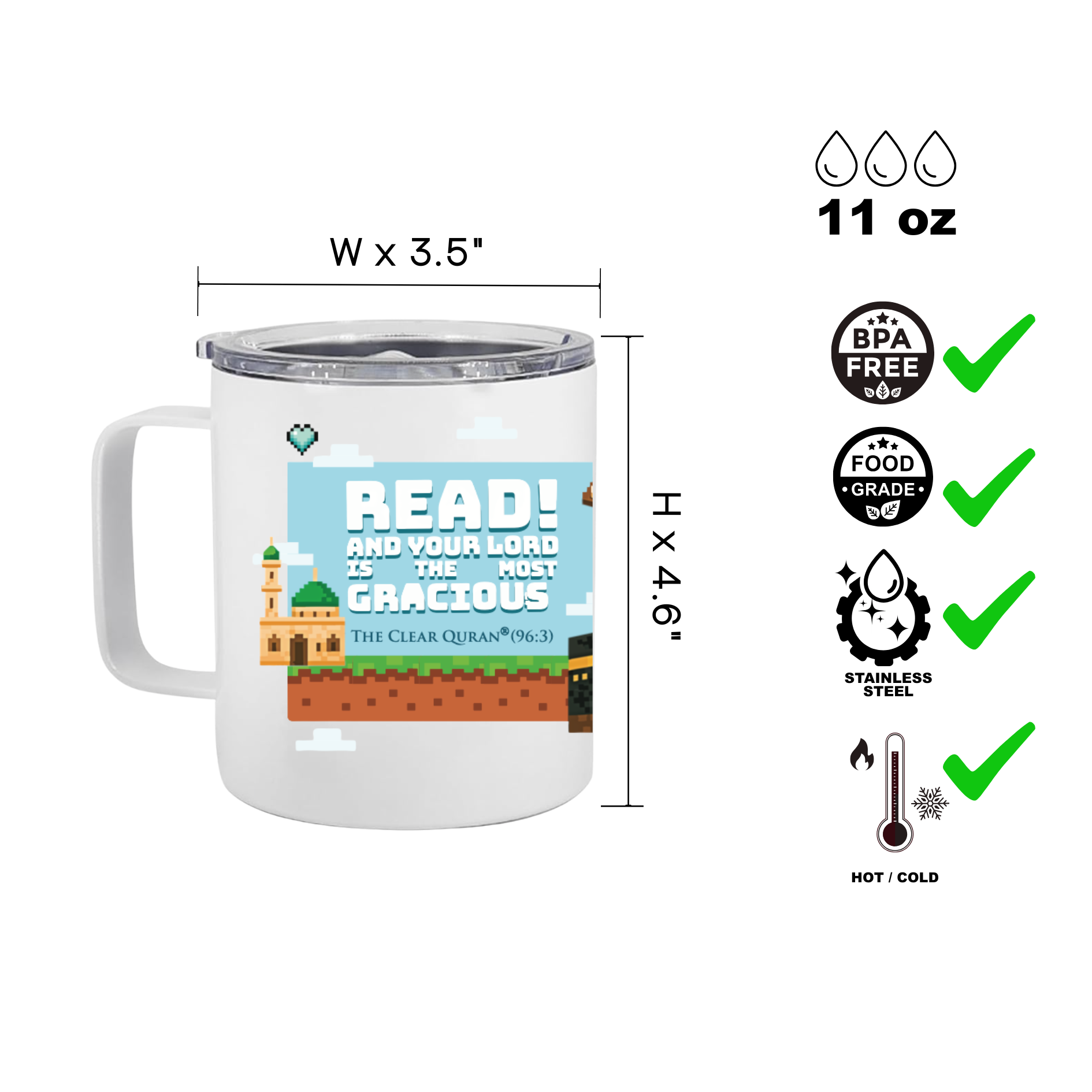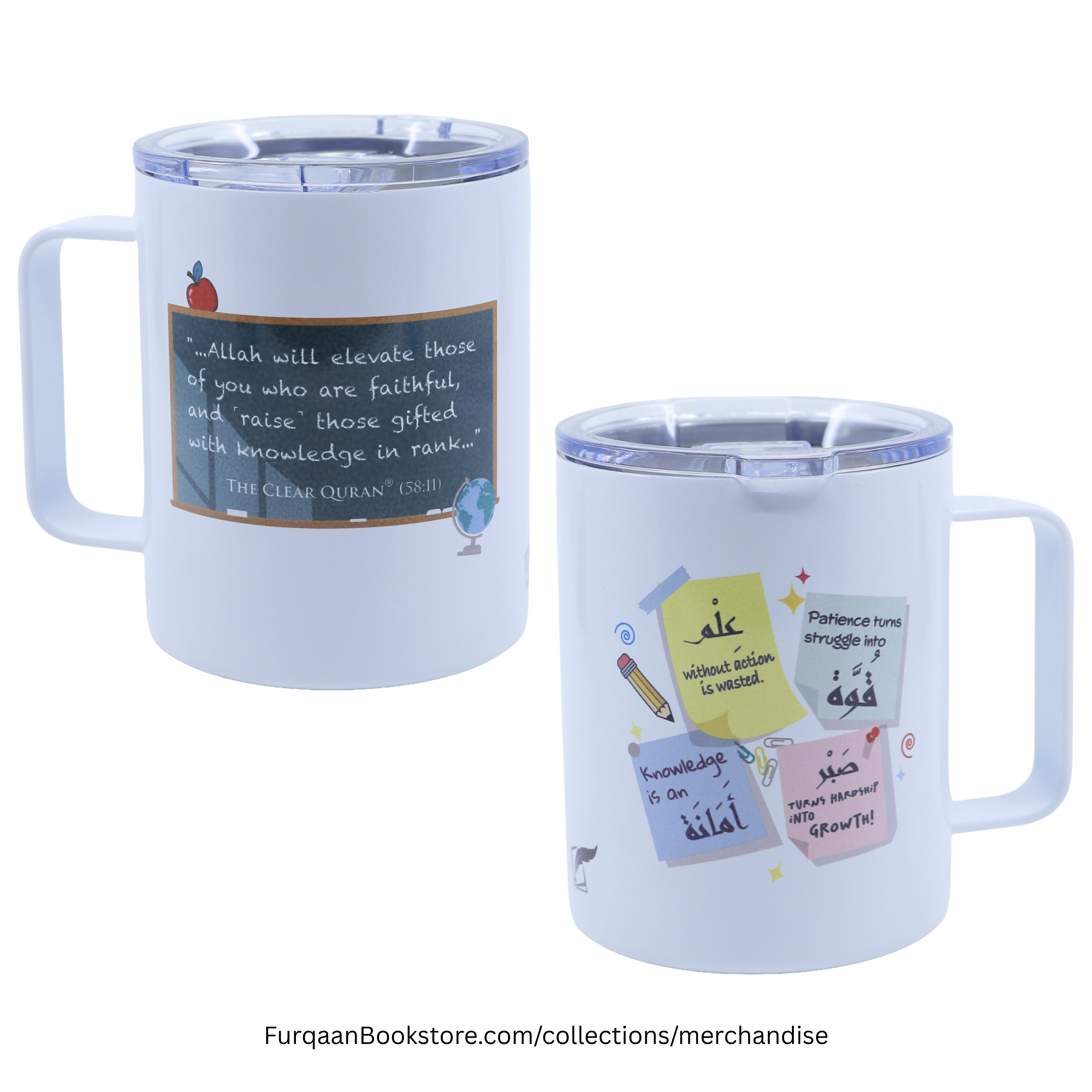 Islamic Stainless Steel Travel Mug with Handle & Lid – 12oz Coffee & Tea Cup with Quran Quotes