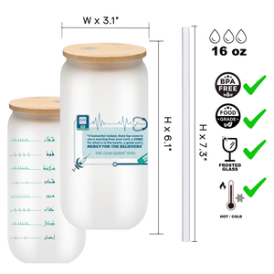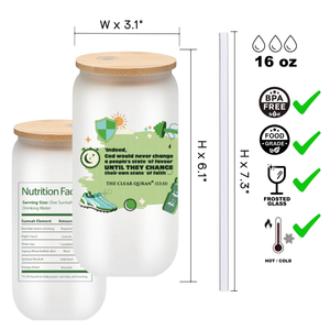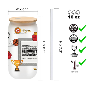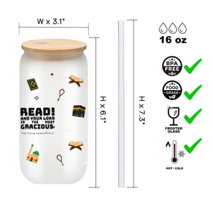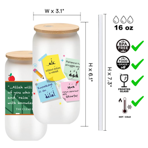 Islamic Frosted Glass Tumbler with Arabic Calligraphy - 16oz Muslim Drinking Glass