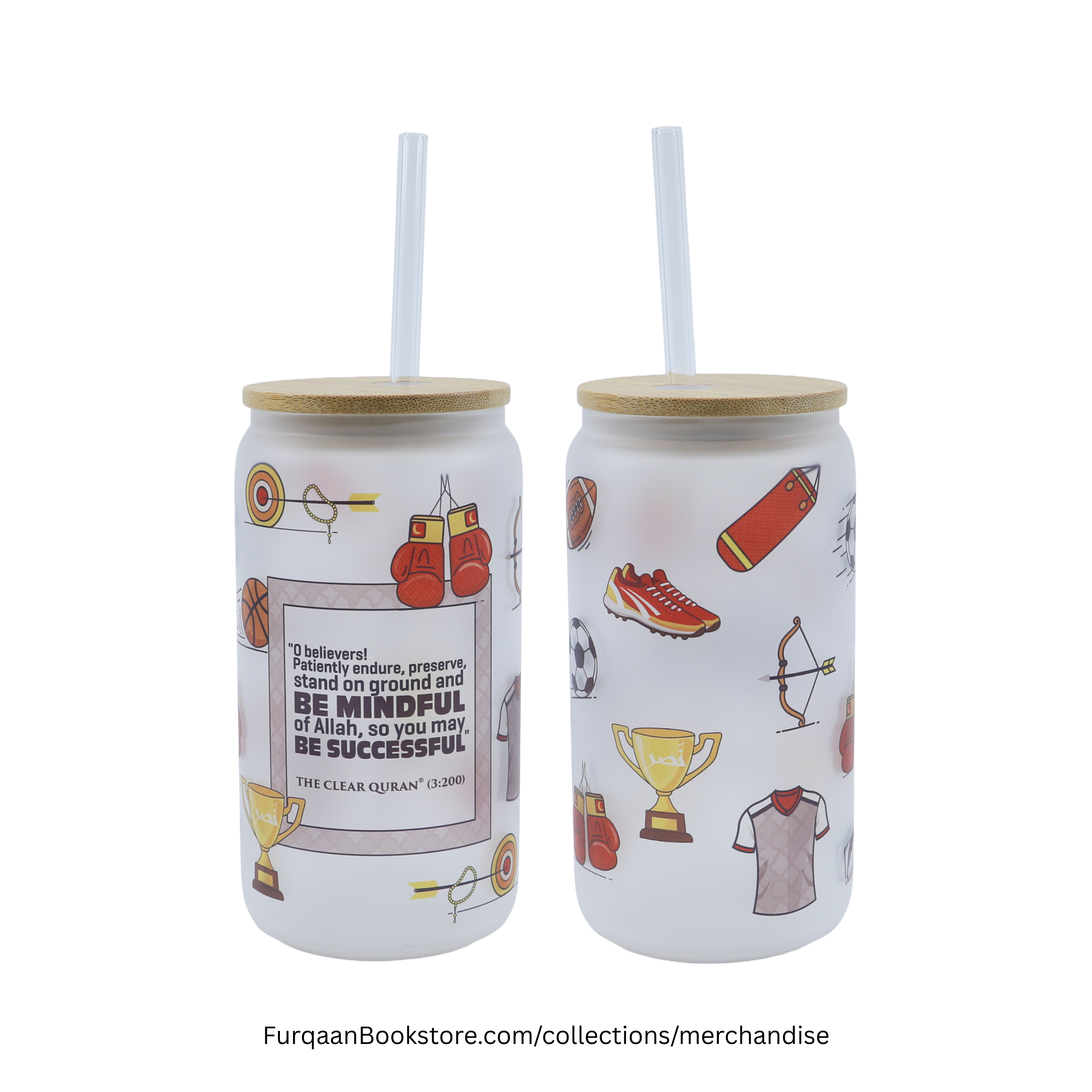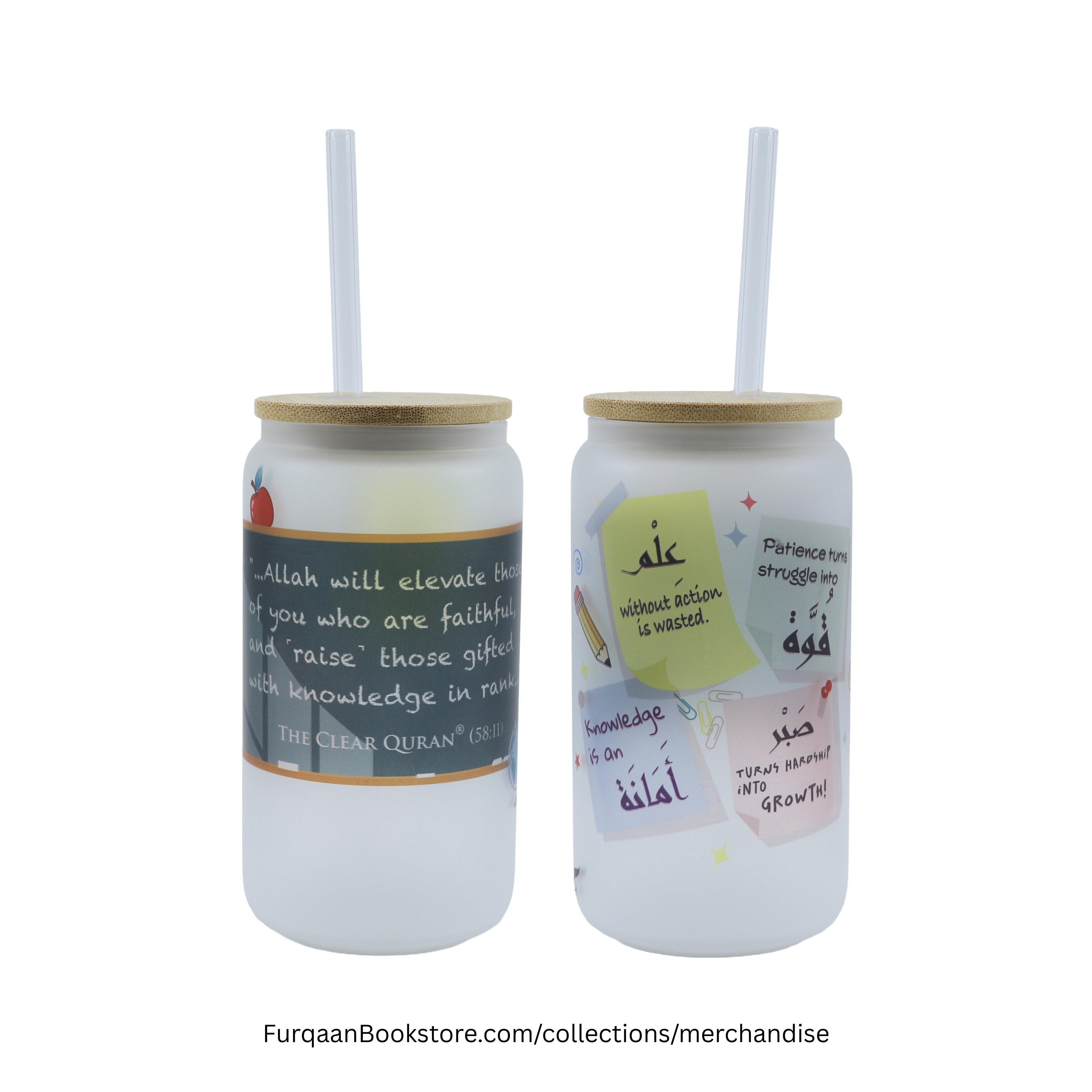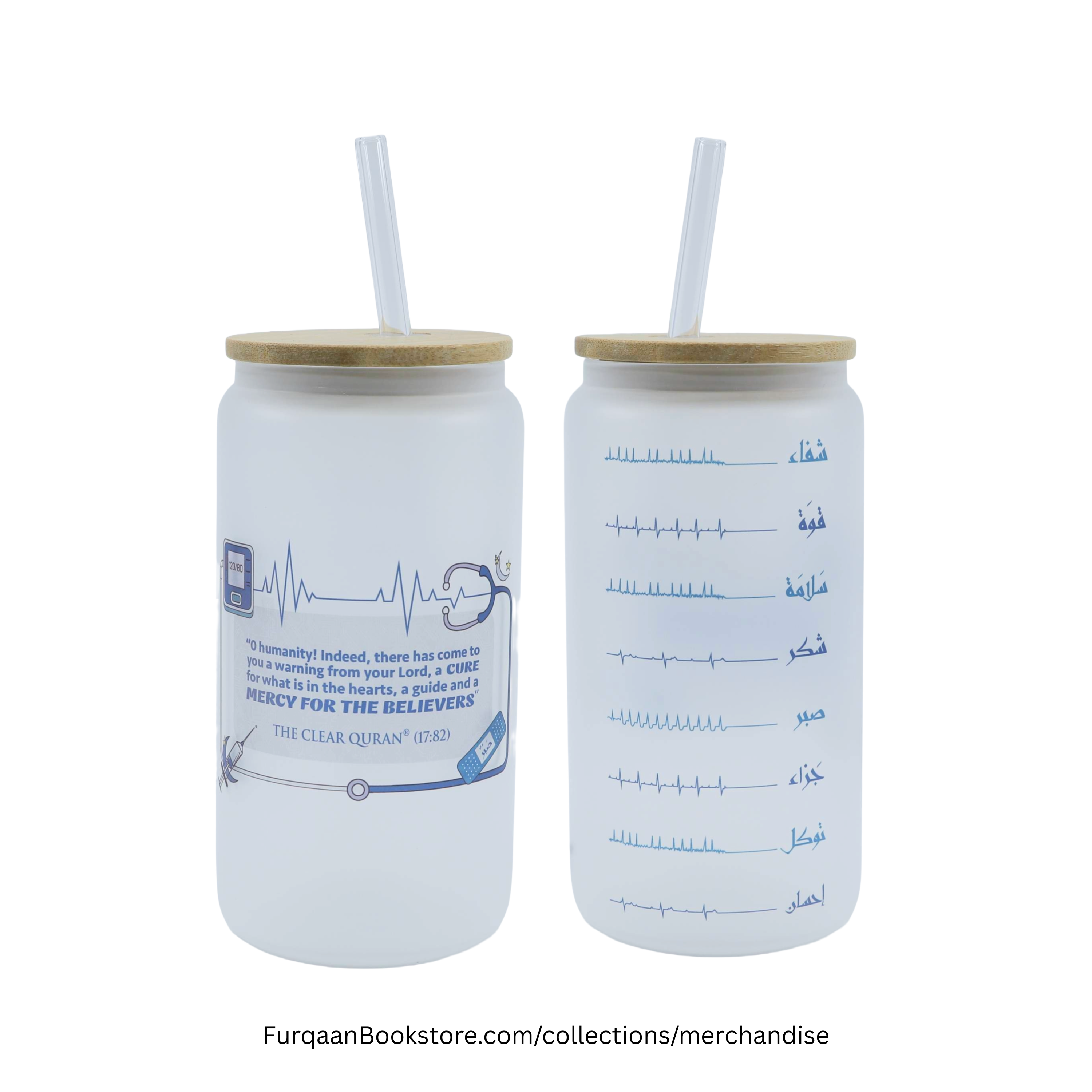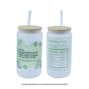 Experience elegance and spirituality with this stunning Islamic frosted glass tumbler featuring beautiful Arabic calligraphy and inspirational Quran verses.