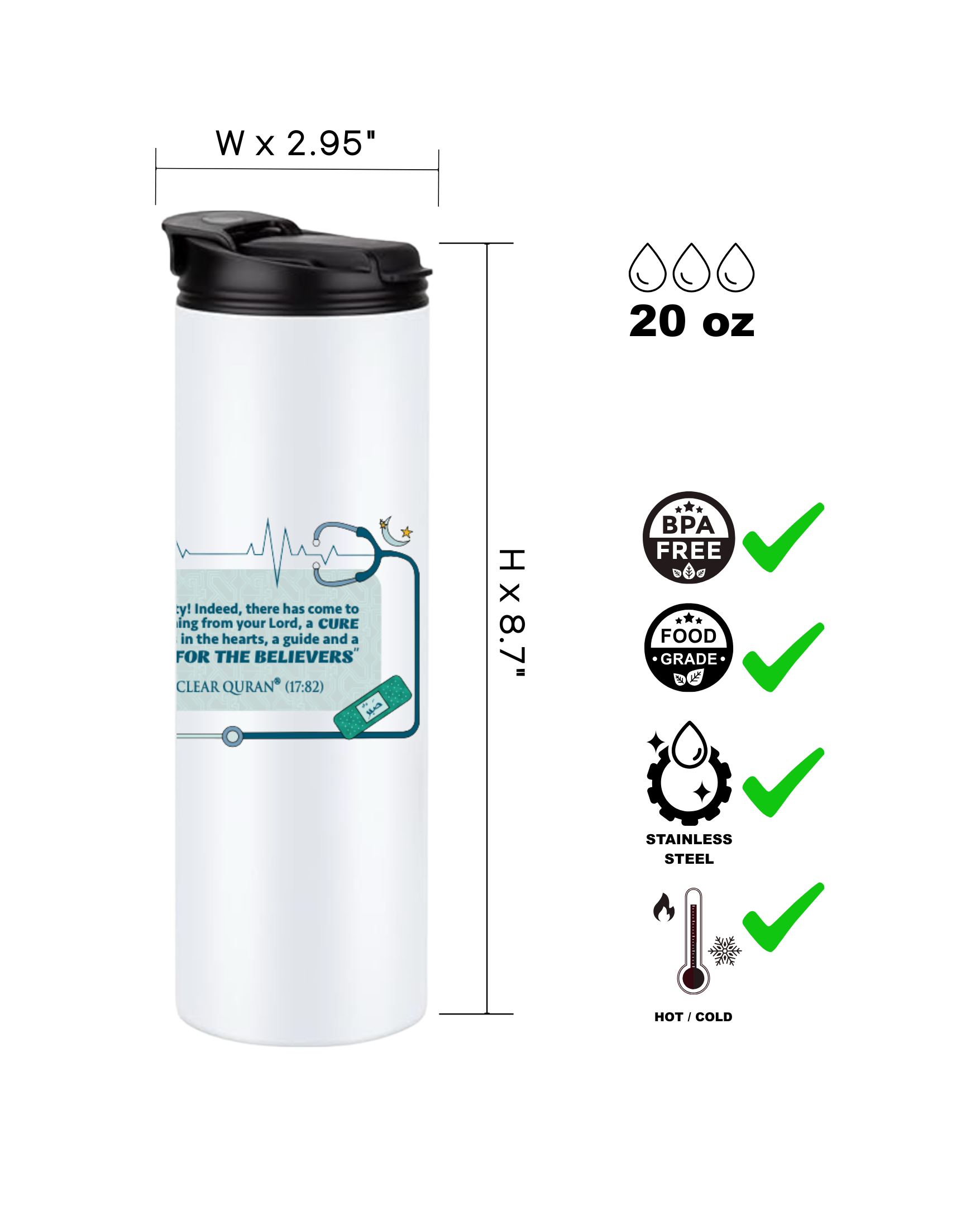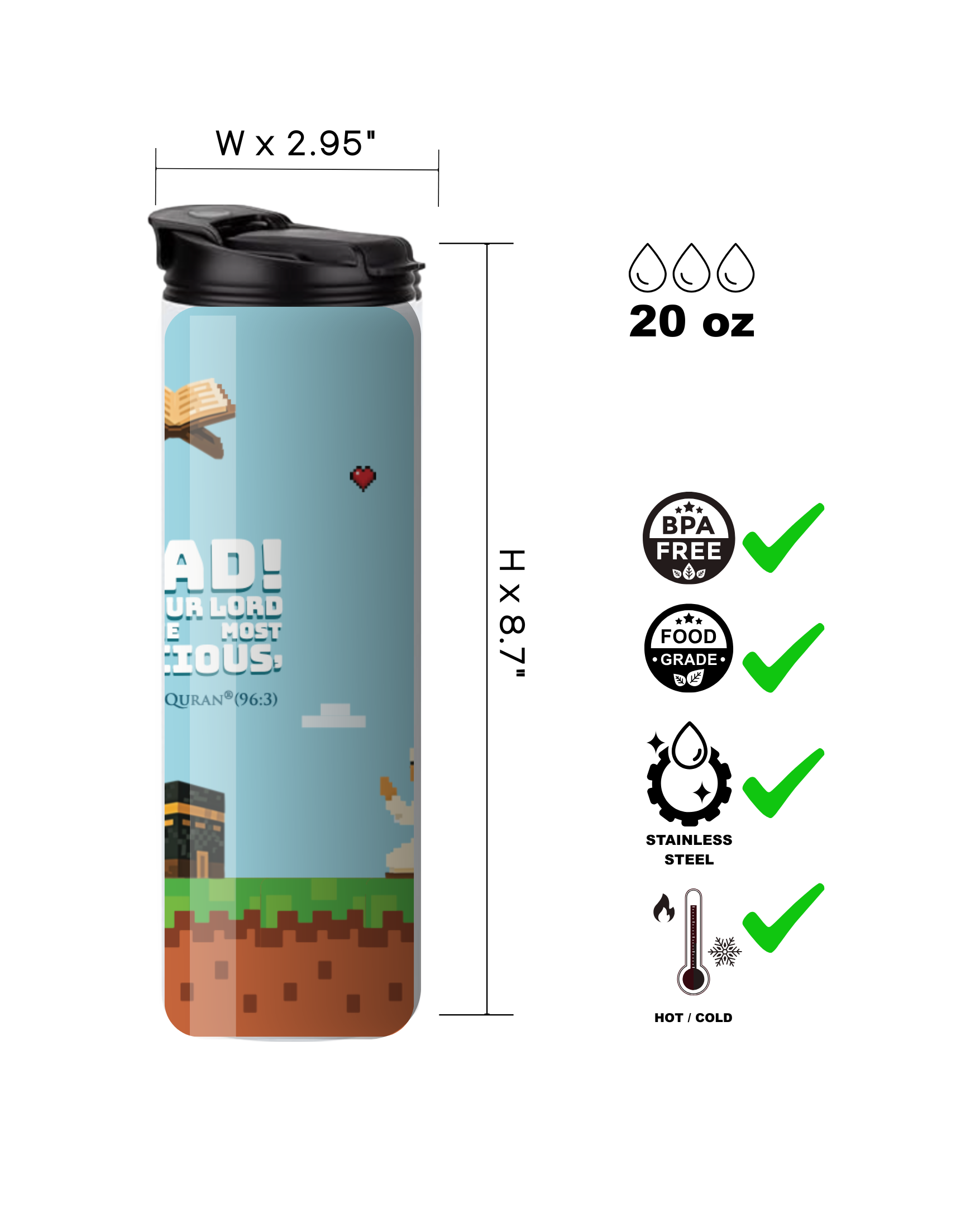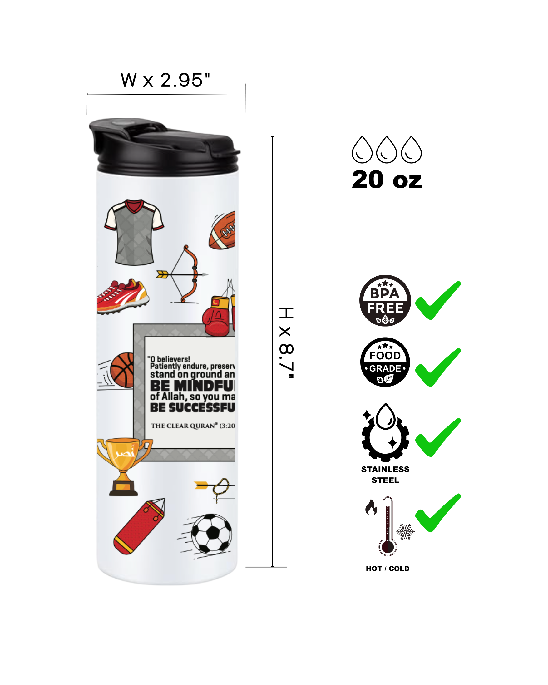 Islamic Stainless Steel Sports Water Bottle with Arabic Calligraphy - 20oz Muslim Sport Tumbler