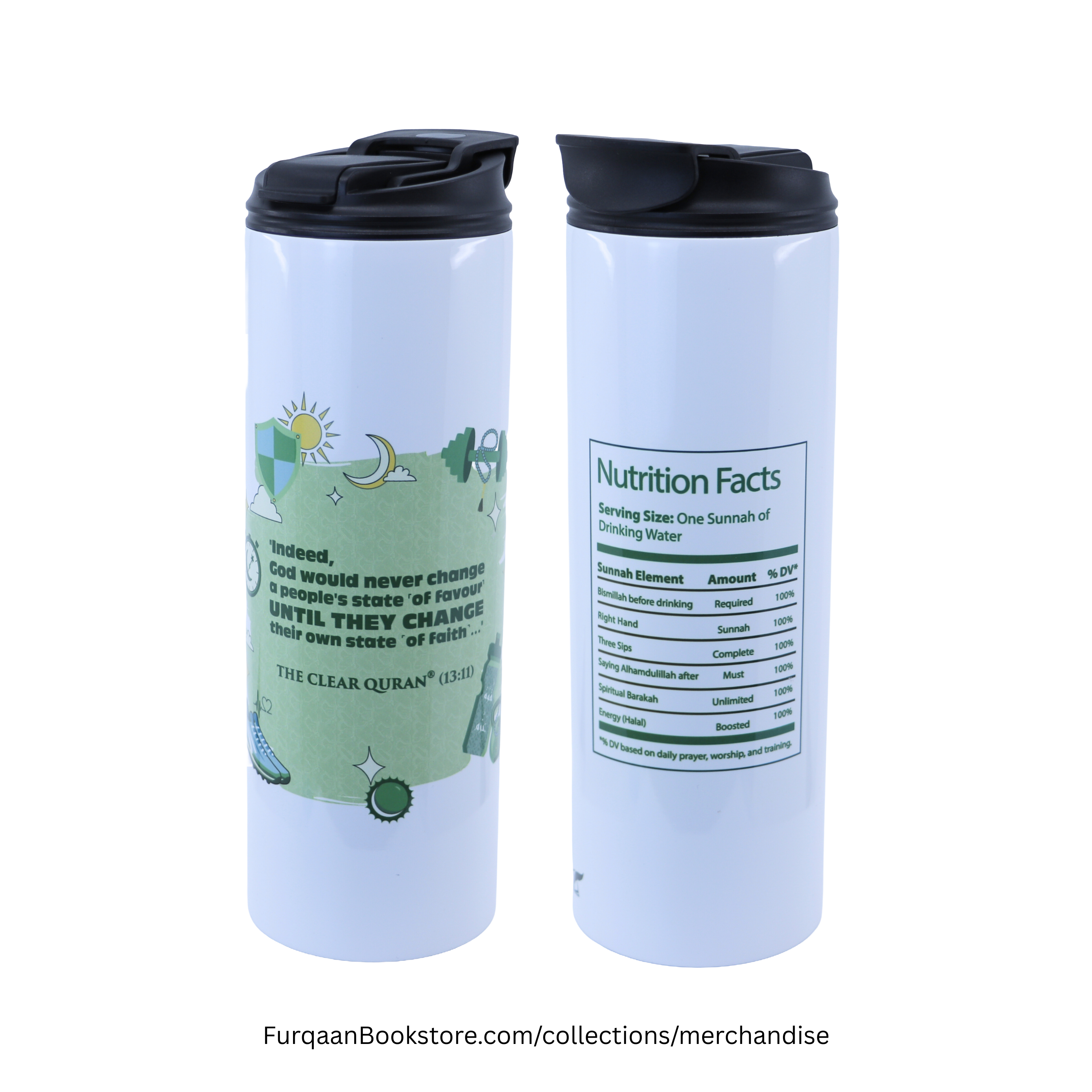 Stay hydrated and spiritually motivated with this premium Islamic water bottle featuring beautiful Arabic calligraphy and inspirational Quran verses.