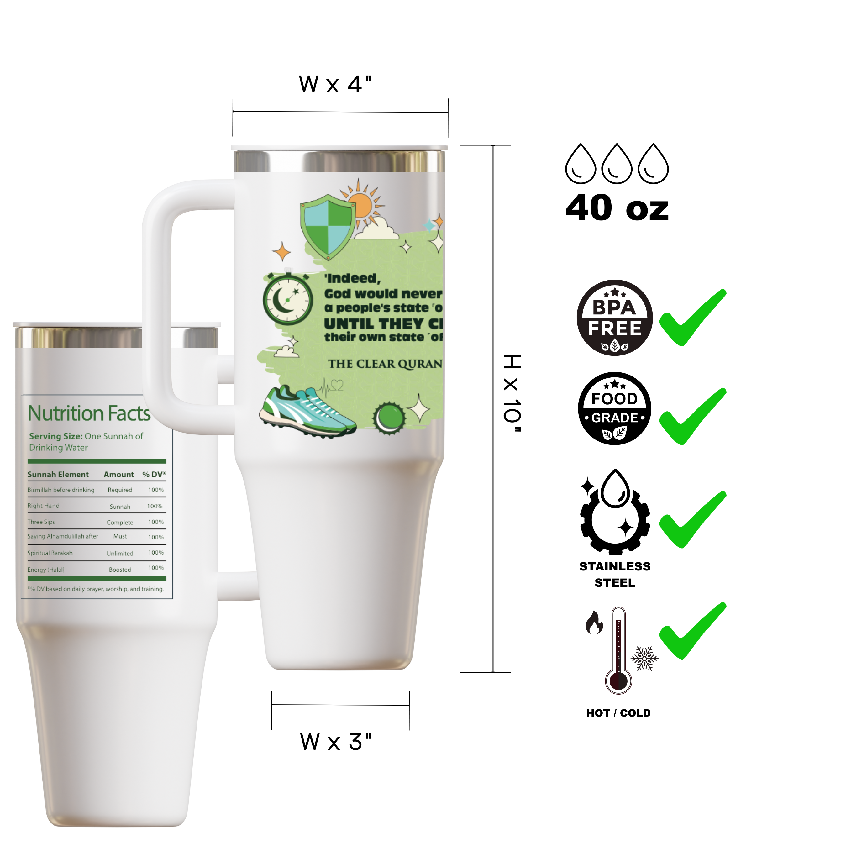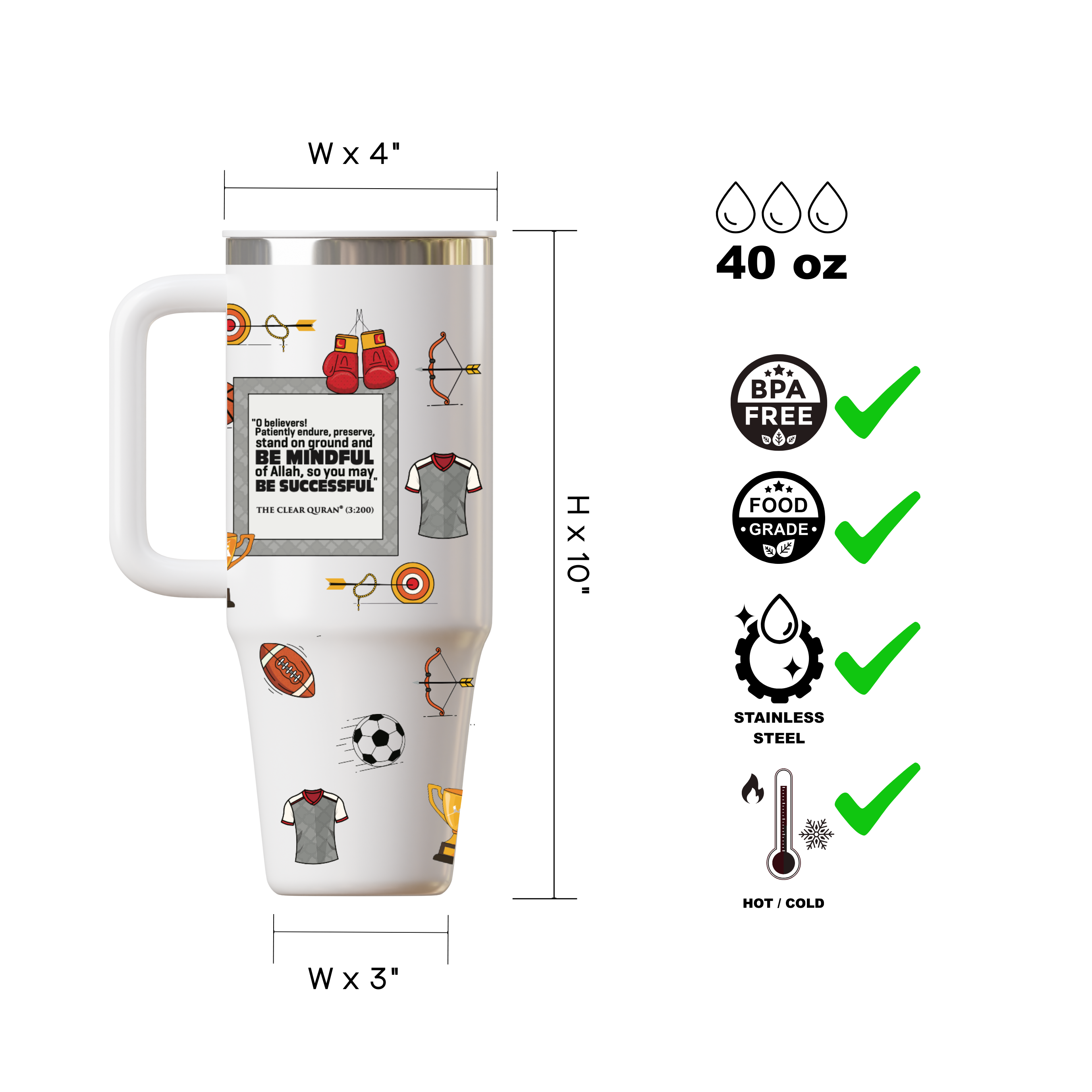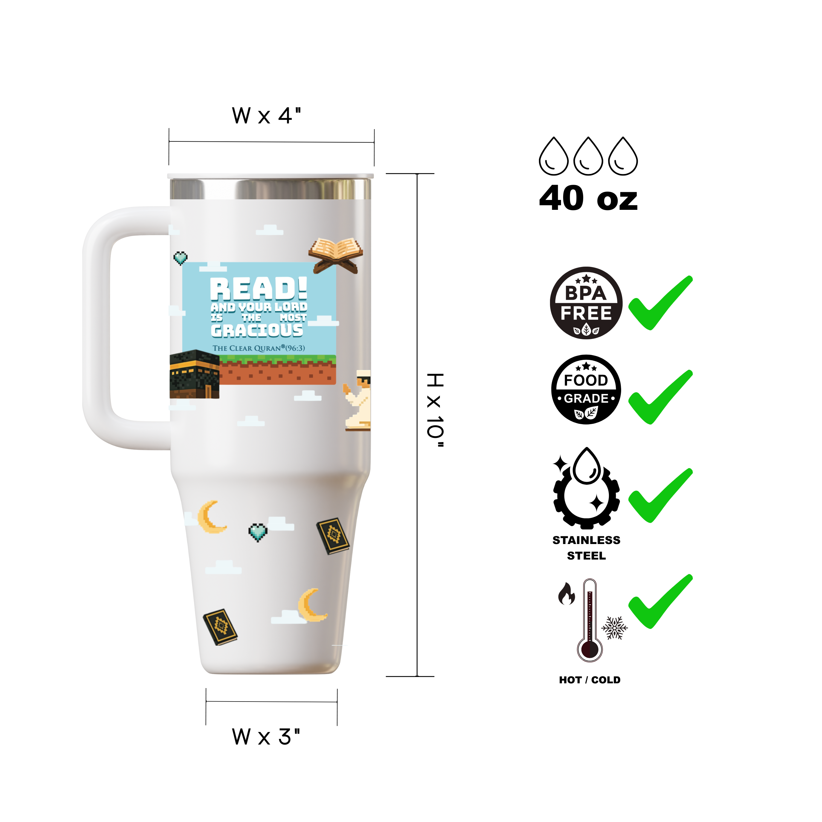 Islamic Stainless Steel Tumbler with Handle – Insulated 40oz