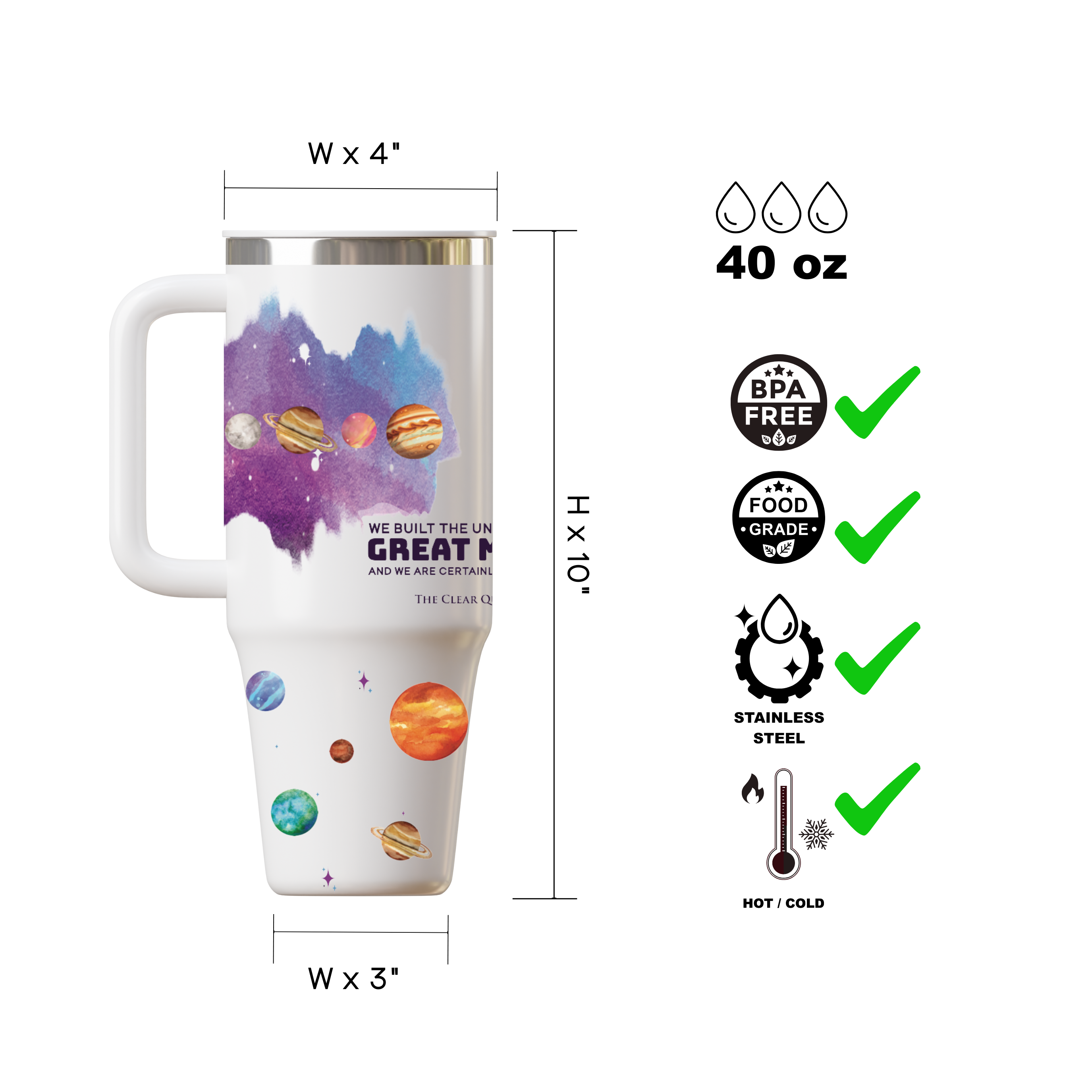 - 40oz capacity - Keeps you hydrated through workdays, workouts, road trips, school, and everything in between.