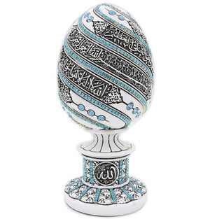 Islamic Table Decor White/Turquoise Egg - Ayatul Kursi