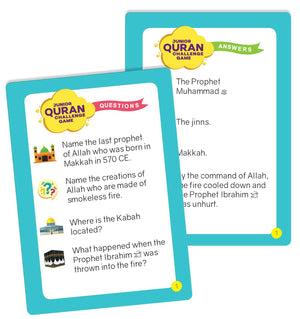 The Junior Quran Challenge Game for children is a unique game based on the Holy Quran. The idea behind this game is to provide the children with both fun and education. All questions are taken from the Quran. They have been creatively worked into this game and children will enjoy answering them. This game can be played at school or at home with all the family members. Begin your journey and find out what fun it is to learn from the Quran.