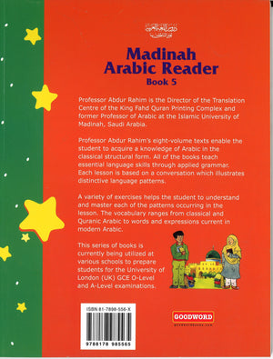 Professor Abdur Rahim, Director of the Translation Centre of the King Fahd Quran Printing Complex and former Professor of Arabic at the Islamic University of Madinah, Saudi Arabia, has authored texts designed to impart a knowledge of classical Arabic through applied grammar. Each lesson, based on a conversation, illustrates distinctive language patterns. These patterns are elucidated by a variety of helpful exercises. The vocabulary ranges from classical and Quranic Arabic to modern Arabic. This series of books is currently being utilized at various schools to prepare students for the University of London (UK) GCE O-Level and A-Level examinations.