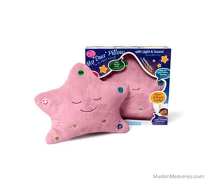Child-safe LED lights and over six minutes of sound combine in Desi Doll Company’s original My Dua’ Pillow allows your child to hear nighttime dua’s/supplications and a soothing lullaby to make bedtime easier, and more fun than ever!
