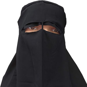 This garment typically leaves the eyes and part of the forehead visible. The gulf-style or full niqab completely covers the face. It consists of an upper band that is tied around the forehead, together with a long wide piece of fabric which covers the face, leaving an opening for the eyes.