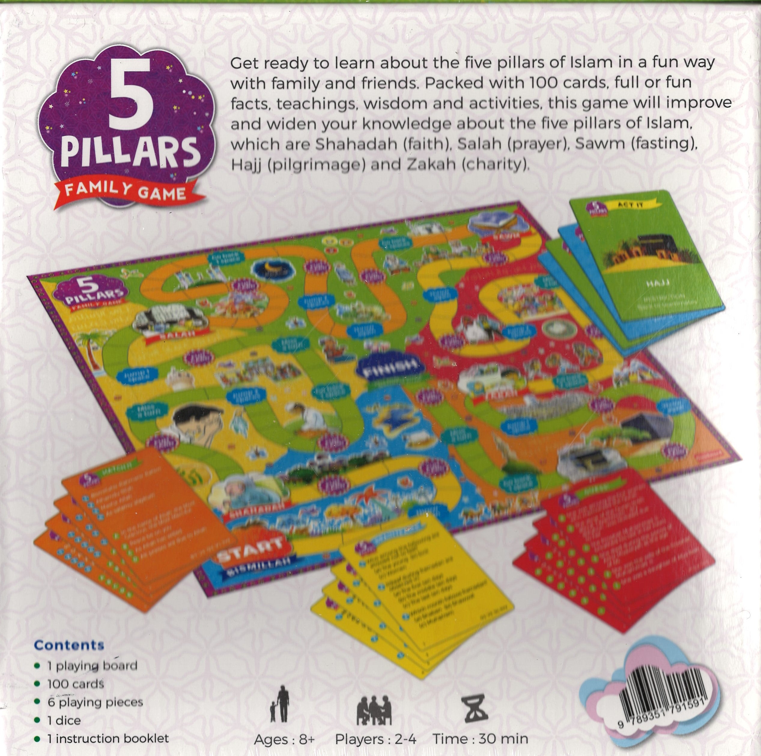 Get ready to learn about the five pillars of Islam in a fun way with family and friends. Packed with 100 cards and full of fun facts, teachings, wisdom, and activities, this game will improve and widen your knowledge about the five pillars of Islam: shahadah (faith), salah (prayer), sawm (fasting), hajj (pilgrimage), and zakah (charity).