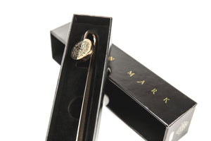 The Quran Mark enamoured with a smooth, premium metallic finish inscribed with the classic Quran calligraphy motif which reads 'Al Quran al Kareem' (The Noble Quran).