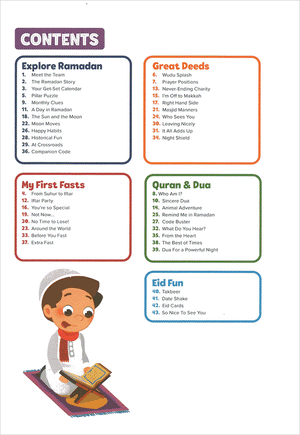 - The book contains bucketloads of faith-filled fun. There are tons of activities infused with Ramadan learning so your child has fun while learning. Activities include mazes, puzzles, stories, recipes, spot the difference activities, and hundreds of stickers!