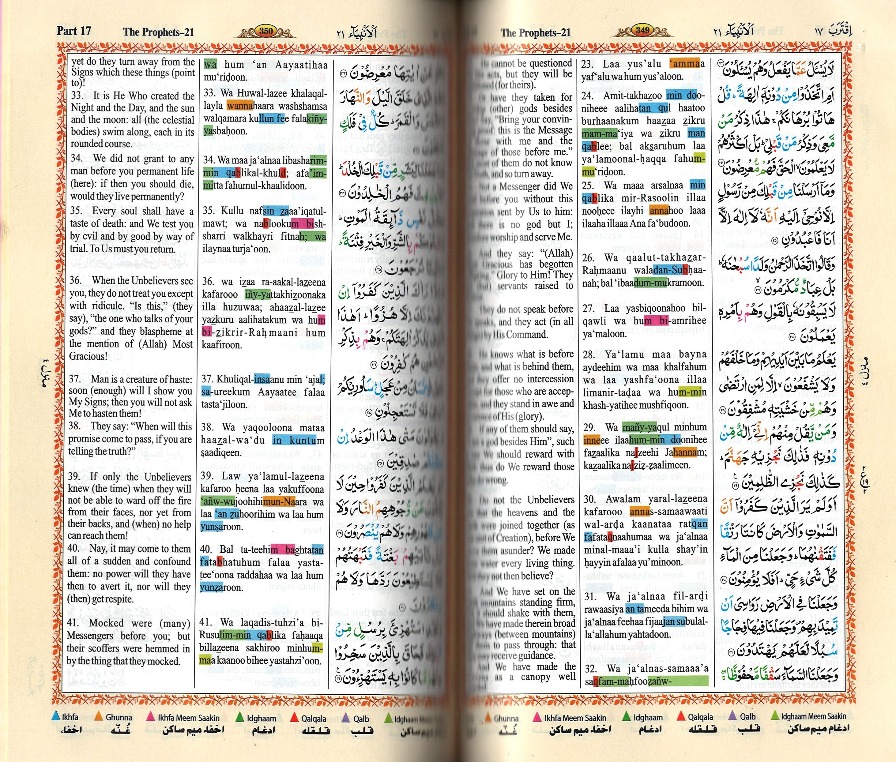 A new translation featuring the Quran in full Arabic text (Majeedi) along with the pronunciation of the Arabic text plus the English translation.