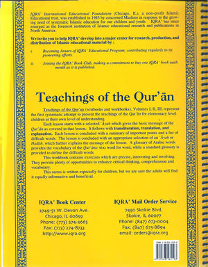 Teachings of Quran 2 Workbook Author: Hina Naseem Akhtar Developed by a young and talented teacher, this workbook is a helpful tool for the study and understanding of 33 important topics related to the teachings of the Qur’an. Each lesson teaches one important Islamic value to our children. The activities in the workbook help the students to comprehend each value and then implement it in their daily living. Product Details: Reading level: Upper Elementary Publisher: IQRA International Educational Foundation Edition: Paperback 104 pages Language: English/Arabic