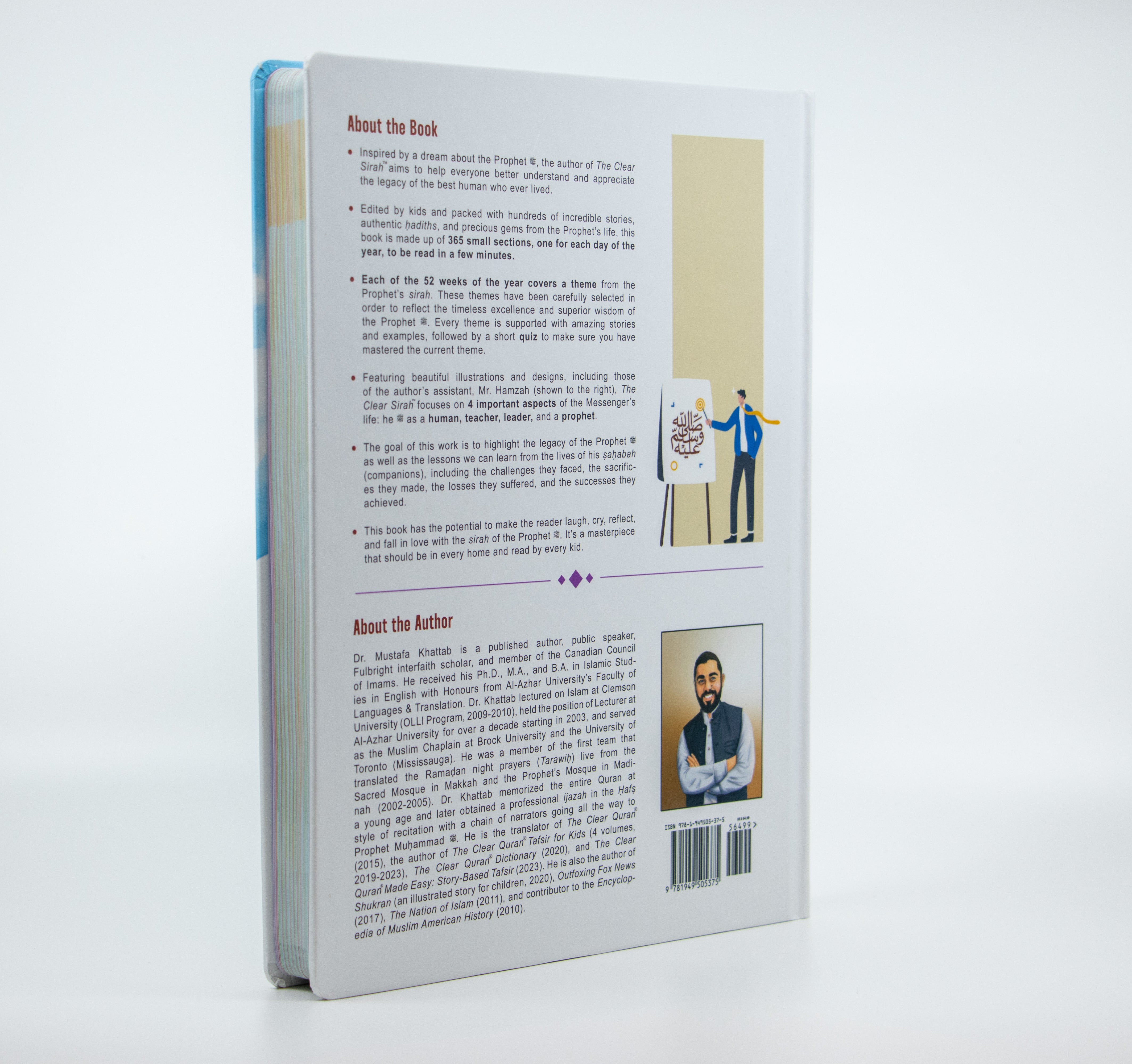 Dr. Mustafa Khattab is a published author, public speaker, Fulbright interfaith scholar, and member of the Canadian Council of Imams. He received his Ph.D., M.A., and B.A. in Islamic Studies in English with Honours from Al-Azhar University's Faculty of Languages & Translation. Dr. Khattab lectured on Islam at Clemson University (OLLI Program, 2009-2010), held the position of Lecturer at Al-Azhar University for over a decade starting in 2003, and served as the Muslim Chaplain at Brock University and the University of Toronto (Mississauga). He was a member of the first team that translated the Ramadan night prayers (Tarawih) live from the Sacred Mosque in Makkah and the Prophet's Mosque in Madinah (2002-2005). Dr. Khattab memorized the entire Quran at a young age and later obtained a professional ijazah in the Hafs style of recitation with a chain of narrators going all the way to Prophet Muhammad ﷺ. He is the translator of The Clear Quran (2015), the author of The Clear Quran Tafsir for Kids (4 volumes, 2019-2023), The Clear Quran® Dictionary (2020), and The Clear Quran Made Easy: Story-Based Tafsir (2023). He is also the author of Shukran (an illustrated story for children, 2020), Outfoxing Fox News (2017), The Nation of Islam (2011), and contributor to the Encyclopedia of Muslim American History (2010).