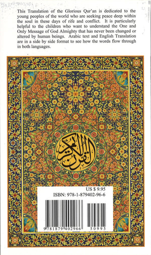 This Translation of the Glorious Qur'an is dedicated to the young peoples of the world who are seeking peace deep within the soul in these days of rife and conflict. it is particularly helpful to the children who want to understand the One and Only Message of God Almighty that has never been changed or altered by human beings. Arabic text and English Translation are in a side by side format to see how the words flow through in both languages.