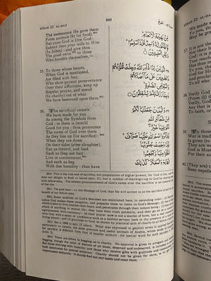Description from the publisher: This is the universally popular Abdullah Yusuf Ali translation, unique in this edition by having its Arabic script be the script commonly familiar with by those of Indian or Pakistani upbringing, i.e. "Persian script." The Quran is a book of directions, showing man the right path to tread. It is a Light which guides his faltering steps, giving him timely reminders of Allah's will, awakening his sleeping nature and conveying the Lord's admonition. It is a book that, in giving him the moral sense to distinguish right from wrong, cures him, and his society, of all ills. In that sense, it is a book of wisdom, full of every expression of correct understanding. More, it is a book of laws, laying down for us the very foundations on which to build and organize society. In short, it provides everything that man-as an individual and as member of society-can ever need. Without this, man can never be the gainer, no matter how hard he tries. The Qur'an explains that it is this One God alone who sustains us throughout our lives here on this earth. Through Him our hearts are set at ease, for it is He who provides true warmth in life. He rescues us in times of peril, assists us in the hour of need. All power rests in His hands: honour and glory will be the rewards of any nation who look to Him for support, while only disgrace and humiliation will be the lot of those who abandon Him. To know this is to hold the key to all the treasures in life. He who possesses this key gain all; he who loses it, loses all.