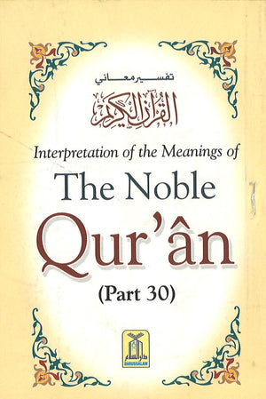 English translation & tafsir of Part 30 of the Noble Quran in pocketsize paperback full color format. English translation & tafsir compiled by: Dr. Muhammad Muhsin Khan and Dr. Muhammad Taqi-ud-Din Al-Hilali (click on names for biography).