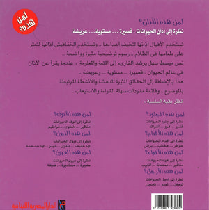 تستخدم الأفيال آذانها لتخيف أعداءها .. وتستخدم الخفافيش آذانها لتعثر على طعامها فى الظلام .. رسوم توضيحية مثيرة وواضحة .. نص مبسط سهل يرشد القارىء إلى المتعة والمعلومة ، عندما يقرأ عن الآذان فى عالم الحيوان : قصيرة … مستوية … وعريضة .. هذا بالإضافة إلى الحقائق المثيرة للدهشة والأنشطة المرتبطة بالموضوع وقائمة مفردات سهلة القراءة والاستيعاب Elephants use their ears to frighten their enemies. Bats use their ears to find food in the dark. Filled with interesting and clear illustrations and an easy simplified text that guides the reader to enjoyment and information. You’ll read about the ears in the animal world: short ears, flat ears, even wide ears! This is in addition to other surprising facts and associated activities on the subject. Includes a list of vocabulary easy to read and comprehend.