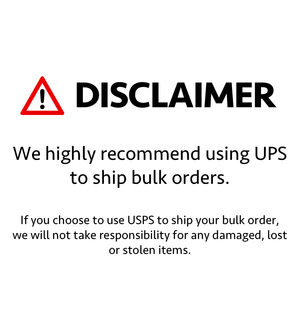 We highly recommend using UPS to ship bulk orders. If you choose to use USPS to ship your bulk order. We will not take any responsibility for any damage, lost or stolen items.