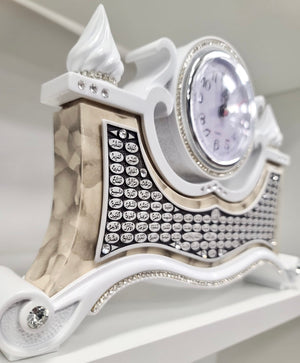 Turkish Islamic Home Table Décor Clock with 99 Names of Allah (Beige & White)